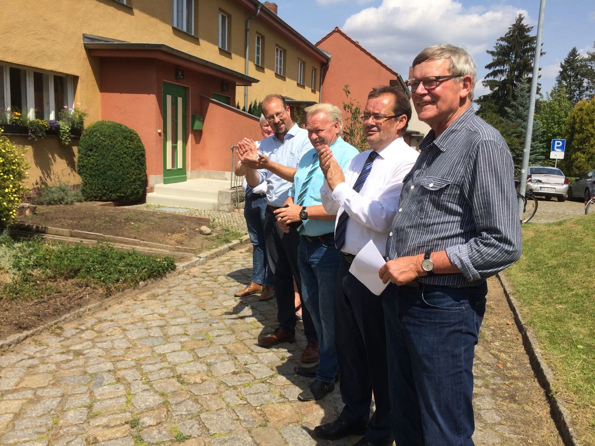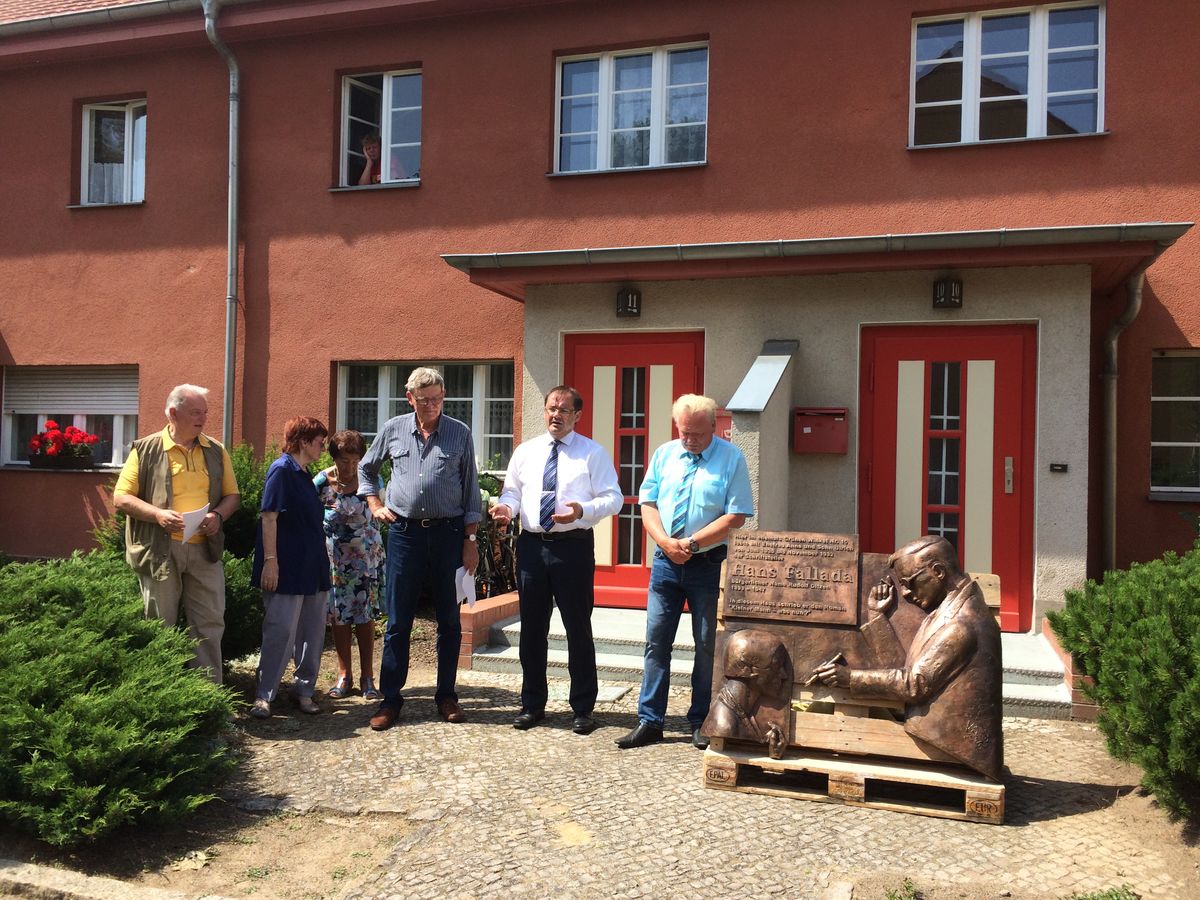 Prominente Gäste bei der Enthüllung des Reliefs waren Achim Ditzen, der 2. Sohn von Hans Fallada und Anna Ditzen, Jörg Vogelsänger, Minister für Umwelt und Landtagsabgeordneter im Brandenburger Landtag. Erfreut mit übersprudelndem Stolz hielt der Neuenhagener Bürgermeister Jürgen Henze seine Laudatio.