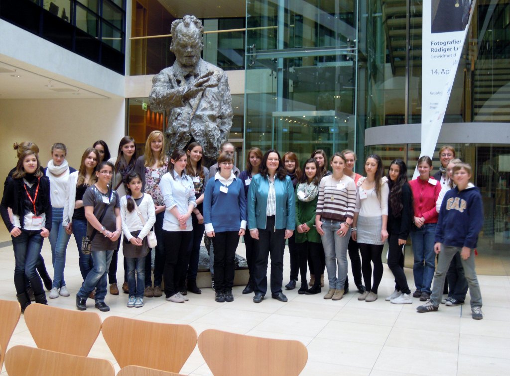 Andrea Nahles mit Teilnehmerinnen am Girls Day. 2. rechts daneben ist Theresa Krüger