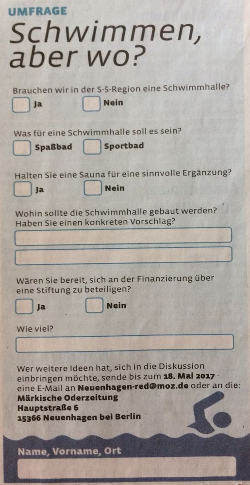 Umfragevordruck der MOZ zur Schwimmhalle