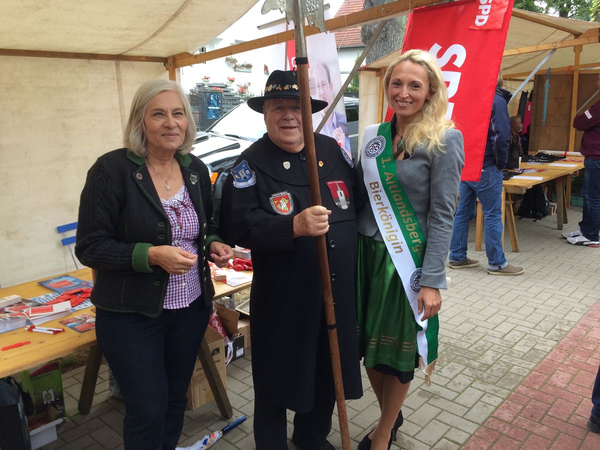 Der Altlandsberger Nachtwächter und die Altlandsberger Bierkönigin besuchen den SPD-Stand
