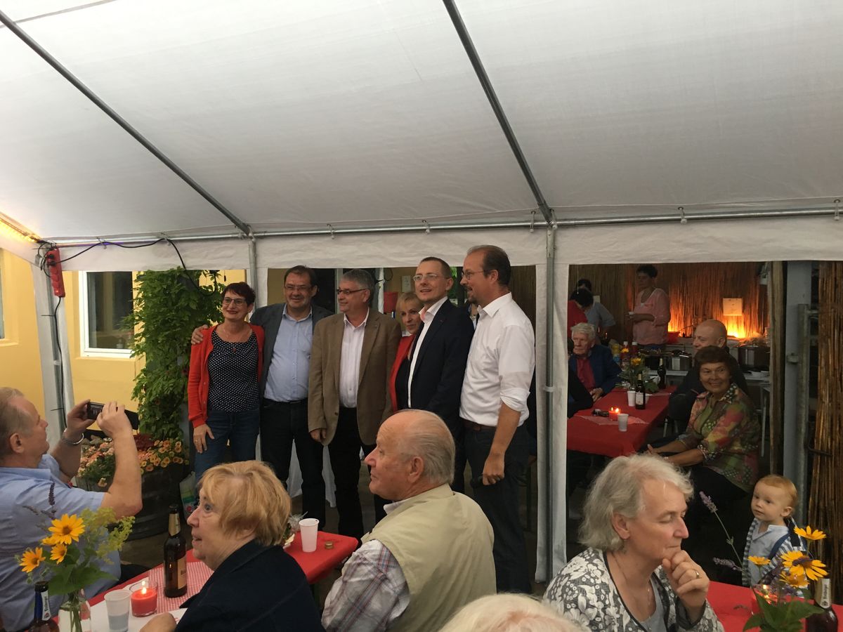 Nein, gutes Wetter gab es nicht beim diesjährigen Sommerfest des Unterbezirks MOL, das diesmal im Garten unseres Bundestagskandidaten Stephen Ruebsam stattfand. Dank geschickter Organisation konnte Hagel und Regen der guten Laune der zahlreichen Mitglieder nicht schaden. Zahlreiche prominente Gäste waren anwedend. So die Landtagsabgeordneten Simona Koss und Jörg Vogelsänger, der Beigeordnete des Landkreises Rainer Schinkel und die Bürgermeisterkandidaten aus Wriezen, Seelow und Petershagen-Eggersdorf.