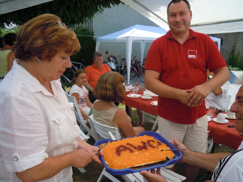 Eine Rast bei der Arbeiterwohlfahrt Trotz großer Hitze, führte die SPD ihre Radtour durch die S-5-Region durch. Mit dabei waren der Minister für Infrastruktur des Landes Brandenburg Jörg Vogelsänger, der Landrat von MOL Gernot Schmidt sowie der Kandidat für den Bundestagswahlkreis Barnim/Märkisch Oderland Olaf Mangold.