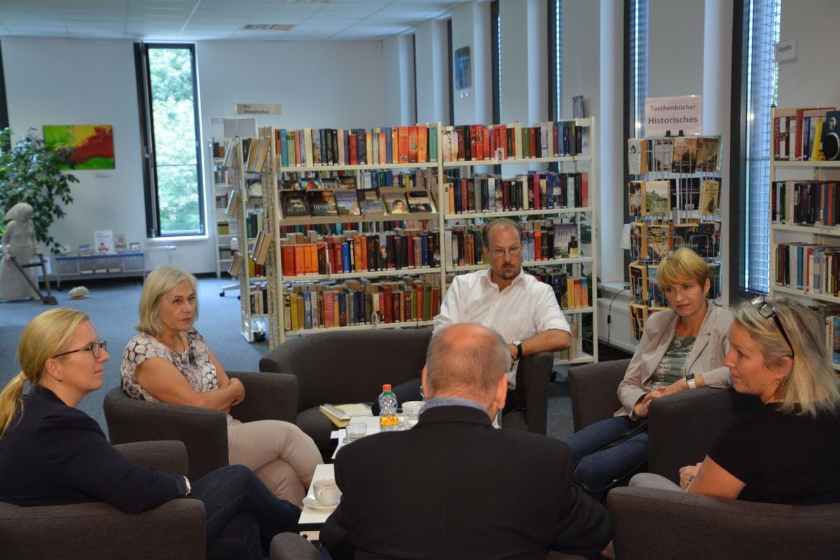 Ein Schlaglicht über Kunst, Kunstschaffende und Kultur in Neuenhagen erhielt die Ministerin Martina Münch, die in Begleitung von Stephen Ruebsam, dem SPD-Bundestagskandidaten mit Schwerpunkt Bildungs- und Kulturpolitik, die örtliche Bibliothek besuchte. An dem Informations- und Erfahrungsaustausch nahmen Stefanie Reiche, Leiterin der Bibliothek, Michael Klein, prominenter Bildhauer Neuenhagens, Janina Meyer-Klepsch, Bauamtsleiterin und Marianne Hitzges, Gemeindevertreterin in Neuenhagen, teil.
